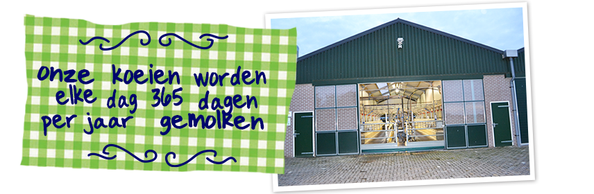 De koeien worden gemolken met een zogenaamde zij aan zij, swing over melkstal. Aan iedere zijde worden 26 koeien tegelijk gemolken worden en er kunnen dus 52 koeien in de melkstal. Door één persoon worden +/- 150 koeien per uur gemolken.